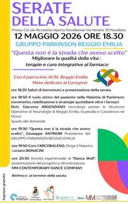 MARTEDI 12 MAGGIO 2026 ORE 18.30 c/o Circolo Ricreativo Aperto Novellarese “Questa non è la strada che avevo scelto” Gruppo Parkinson Reggio Emilia. Intervento sul ruolo attivo del paziente nella Malattia del Parkinson del dott. Giacomo ARGENZIANO neurologo presso le Strutture Operative di Neurologia di Reggio Emilia, Guastalla e Castelnovo né Monti.
